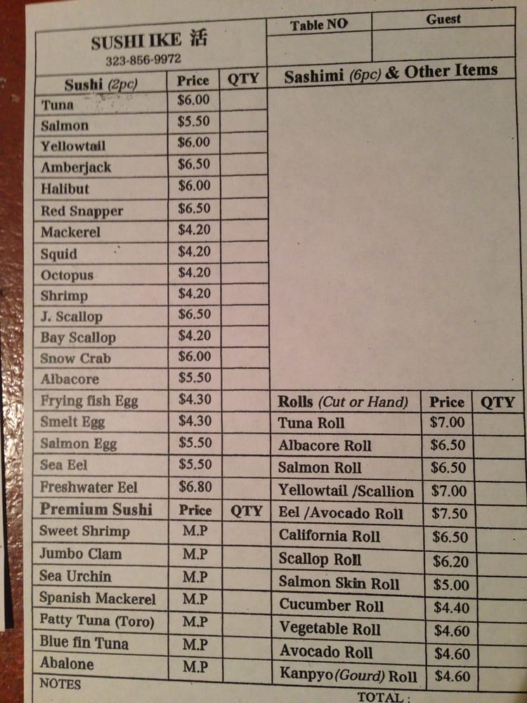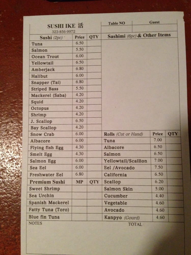 Introducing the Menu of Sushi Ike
